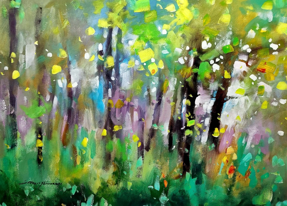 Commitment to abstraction and innovation is fundamental to my innate style of art making. Painting thought-provoking invented landscapes that challenge the eye of the viewer, is what excites me.